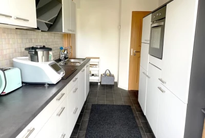 Einziehen, wohlfühlen! Hier stimmt vieles! Sie wohnen in einem 3-Parteienhaus ruhig nach hinten heraus. Dort befindet sich auch der Balkon. Gelungen ist auch die Seperierung des Eßbereichs/Büros vom Wohnzimmer. Die optionale Küche läßt keine Wünsche offen. Ob Ceranfeld, Kühl- und Gefrierkombi, Ofen und Spülmaschine. Auf dem Balkon haben Sie die Sonne zu Gast. Eine Garage kann angemietet werden.