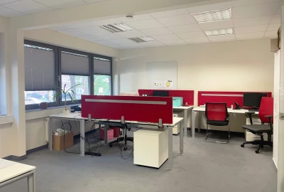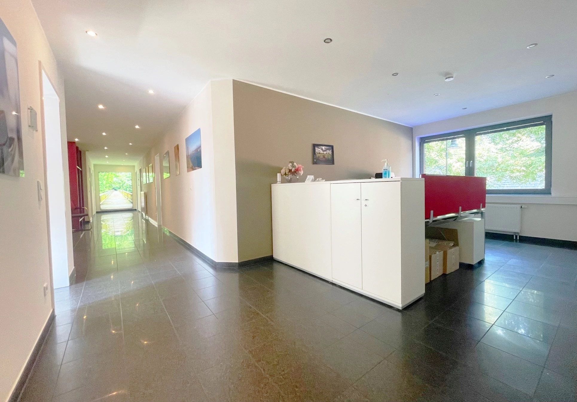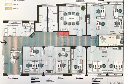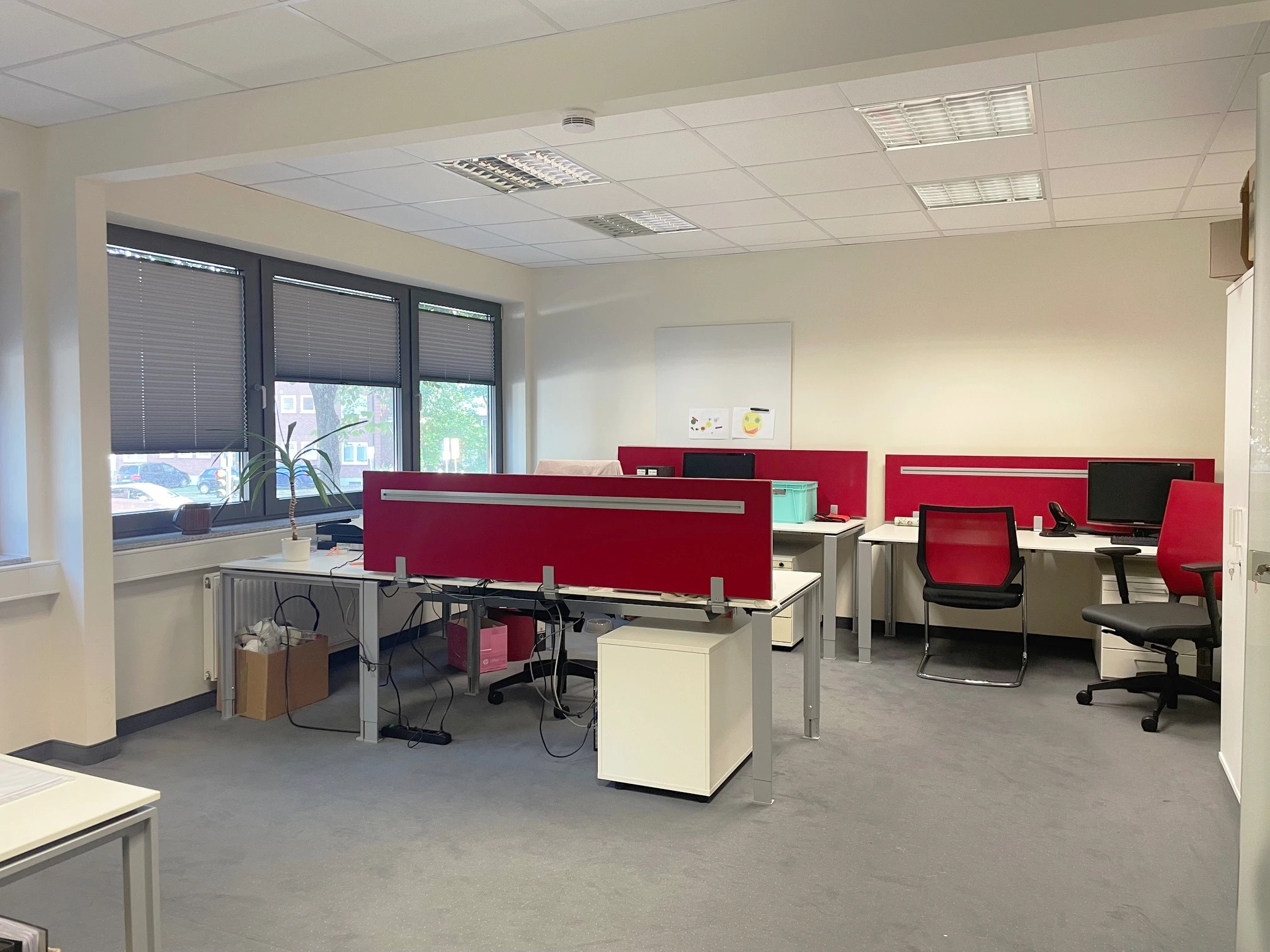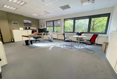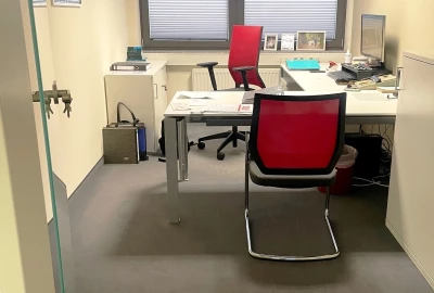 Die sehr wertig ausgestattete und modern eingerichtete Einheit besteht aus zwei großen Büros und drei kleinen. Wobei die Raumaufteilung "beweglich" ist. Ob offene Arbeitsplätze zur Förderung des Teamgedankens in den "großen Büros" oder zurückgezogen für mehr Ruhe in den "kleinen". Vieles ist möglich. Erwähnenswert ist die gute Belichtung sowie die reichhaltigen Anschlüsse für PC, Netzwerk, Steckdosen. Ihr Bürokonzept kann hier sicherlich umsetzen werden, es macht Freude dort zu arbeiten!