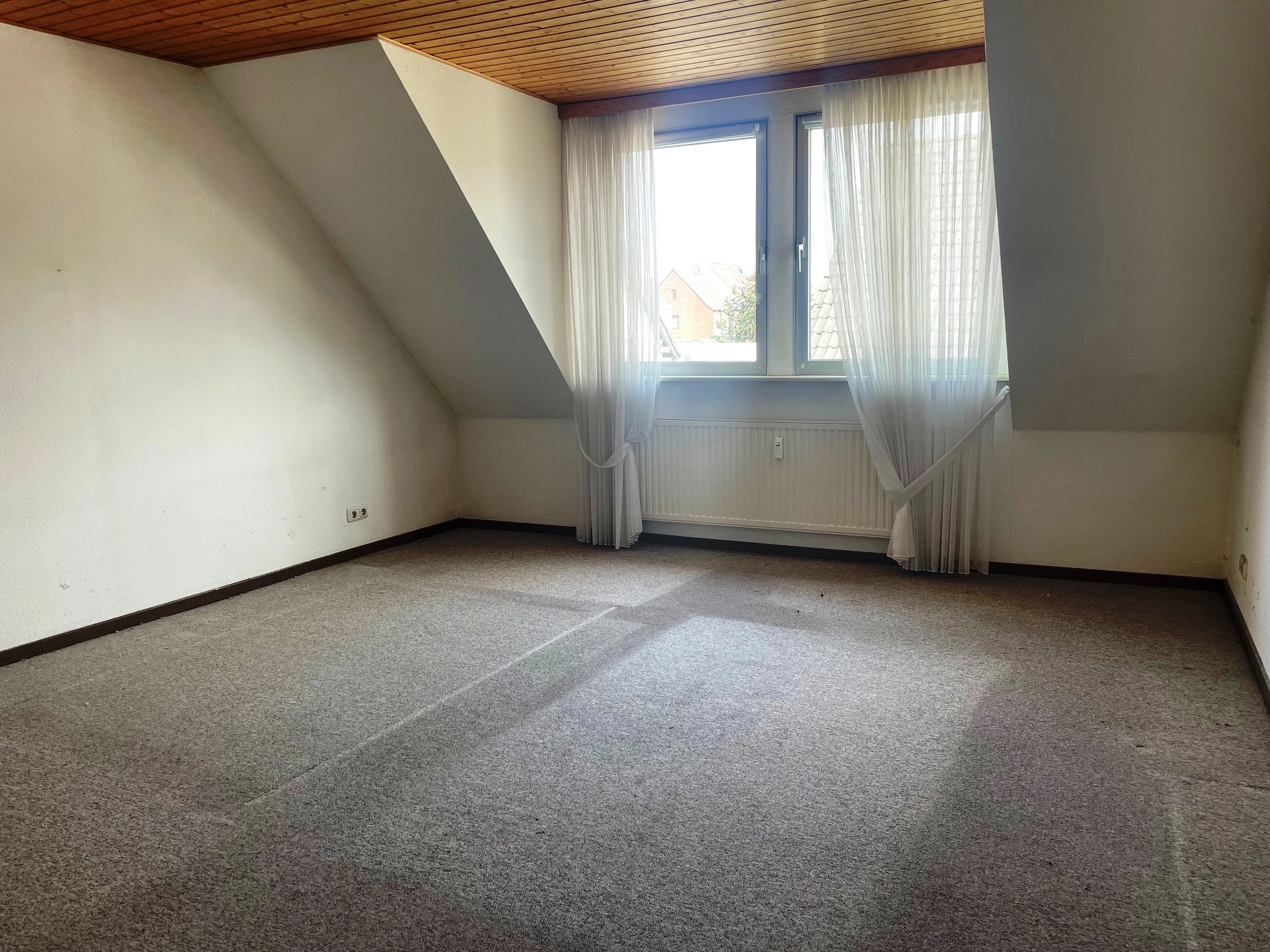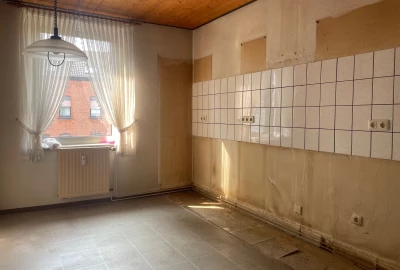 Hier wären versierte Handwerkerhände gut am Platz. Sie können sich hier Ihr neues Zuhause schaffen. Die Substanz des Hauses ist solide. Die Raumaufteilung paßt auch für eine große Familie. Das Haus wird von zwei Parteien genutzt. Das Erdgeschoß (z.Zt. noch vermietet) als Einliegerwohnung, das OG und DG als große Wohnung. Diese Einheit hat zwei Schlafzimmer, ein Wohnzimmer, ein kleines Büro/Abstell, Küche, Bad und G-WC.